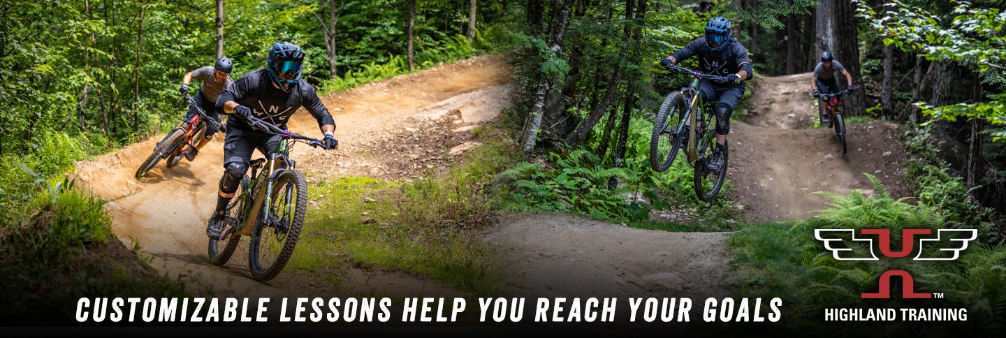 At Highland, safety is always top priority. Our coaching staff generally recommends a full-suspension bike with disc brakes. However, jump-specific hard tails may be appropriate for dirt-jump and freestyle sessions. Full-finger gloves, knee/elbow protection, and full-face helmets are also strongly recommended. All equipment is available to rent or purchase on site at the Highland Mountain Bike Shop if needed.