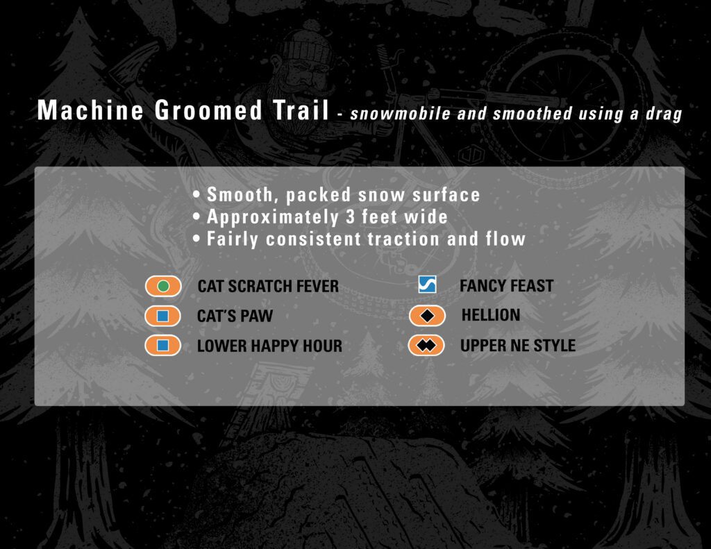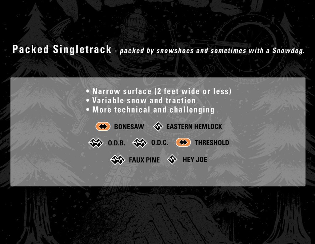 Our Winter crew will be grooming the mountain leading up to the Woolly. Which trails will be open is an answer left to Mother Nature. Typically we have had the following trails for the Winter Woolly: